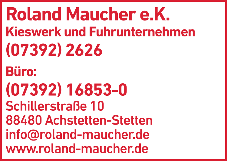 Die Adresse von Maucher Roland Kieswerk lautet: Schillerstr. 10, 88480 Achstetten