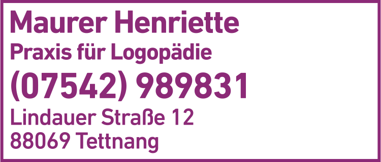 Die Adresse von Maurer Henriette Praxis für Logopädie lautet: Lindauer Str. 12, 88069 Tettnang