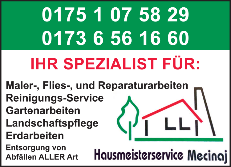 Mecinaj Hausmeisterservice 0175 1 07 58 29 Nastätten Oberstr. 23 56355