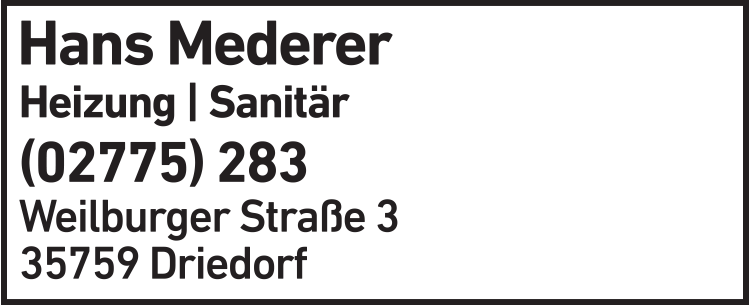 Mederer Hans Heizung Sanitär 02775 2 83 Driedorf Weilburger Str. 3 35759