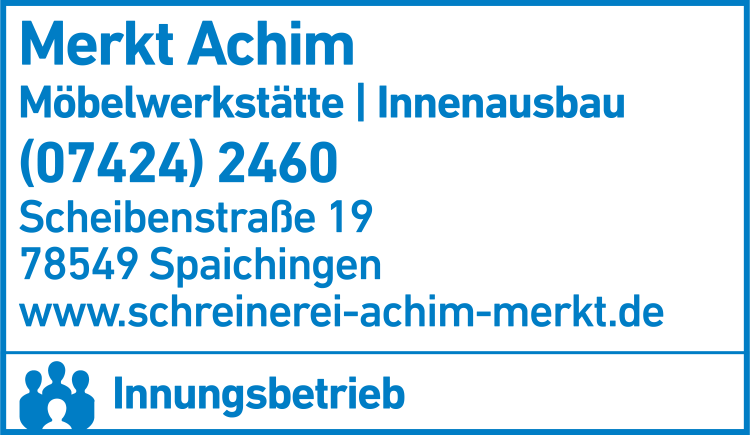 Die Adresse von Merkt Achim Möbelwerkstatt lautet: Scheibenstr. 19, 78549 Spaichingen