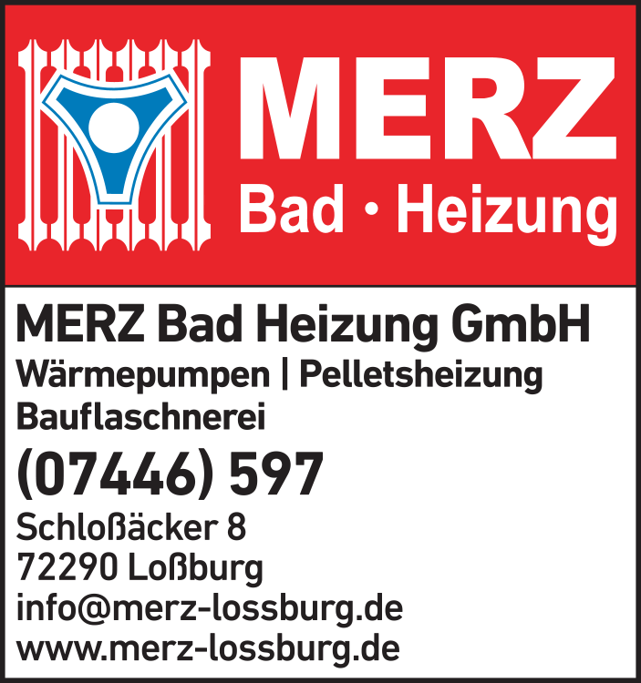 Merz Bad - Heizung GmbH Bad Heizung Solar 07446 5 97 Loßburg Schloßäcker 8 72290 5 5 4