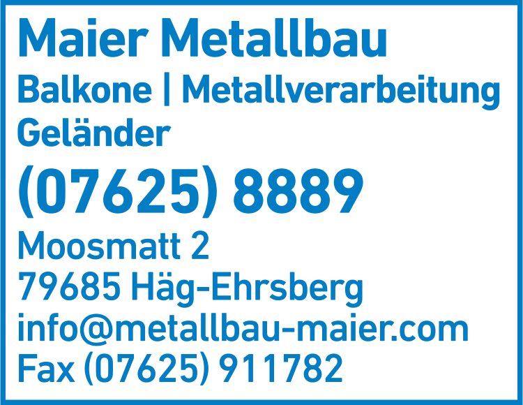 Metallbau Maier Inh. Dominik Maier 07625 88 89 Häg-Ehrsberg Moosmatt 2 79685