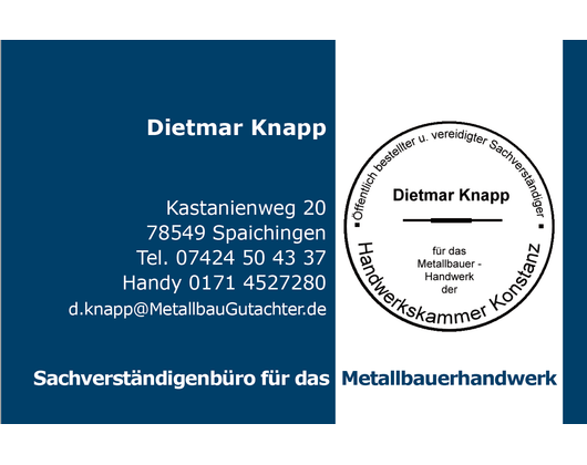 Knapp Dietmar öffentl. best. und vereid. Metallbau-Sachverständiger
