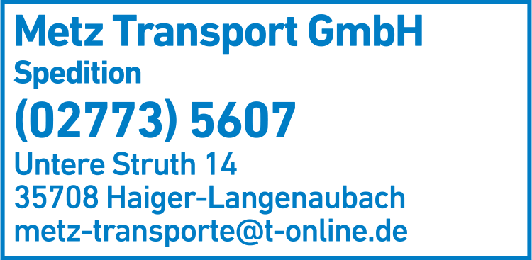 Die Adresse von Metz Transport GmbH lautet: Untere Struth 14, 35708 Haiger