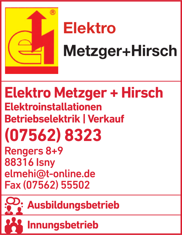 Die Adresse von Metzger + Hirsch Elektro lautet: Rengers 8 u.9, 88316 Isny
