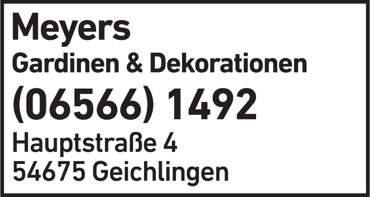 Die Adresse von Meyers Bruno Raumausstatter lautet: Hauptstr. 4, 54675 Geichlingen