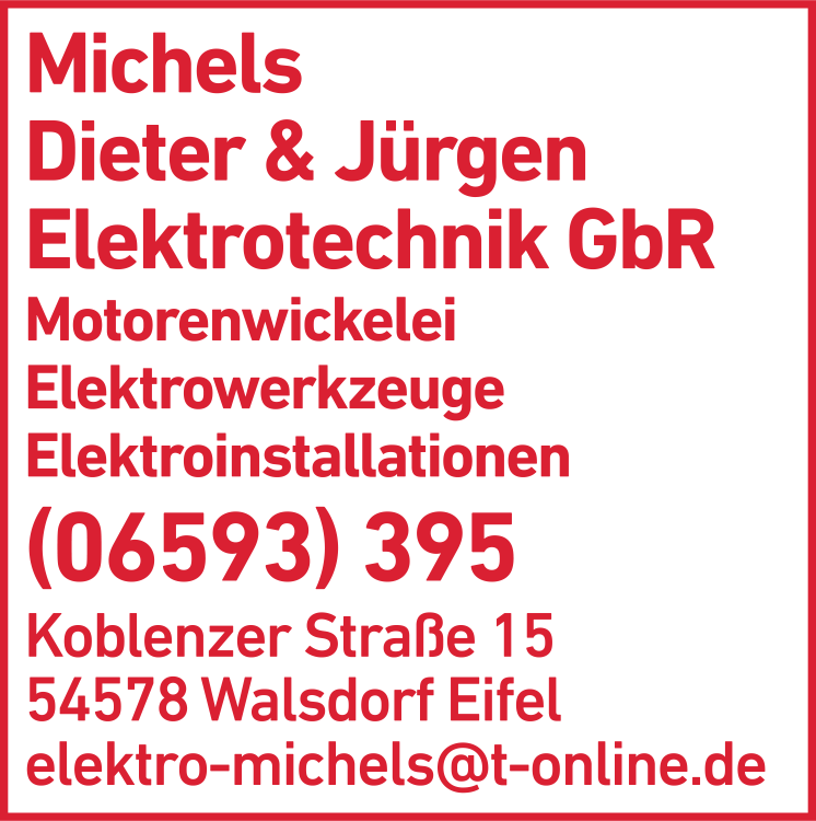 Die Adresse von Michels Elektrotechnik GbR lautet: Koblenzer Str. 15, 54578 Walsdorf