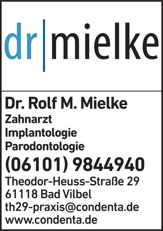 Die Adresse von Mielke Rolf M. Dr. Zahnarzt lautet: Theodor-Heuss-Str. 29, 61118 Bad Vilbel