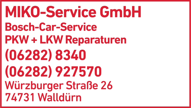 Die Adresse von Miko GmbH lautet: Würzburger Str. 26, 74731 Walldürn