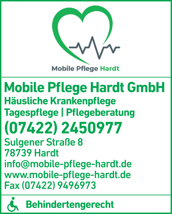 Die Adresse von Mobile Pflege Hardt GmbH lautet: Sulgener Str. 8, 78739 Hardt