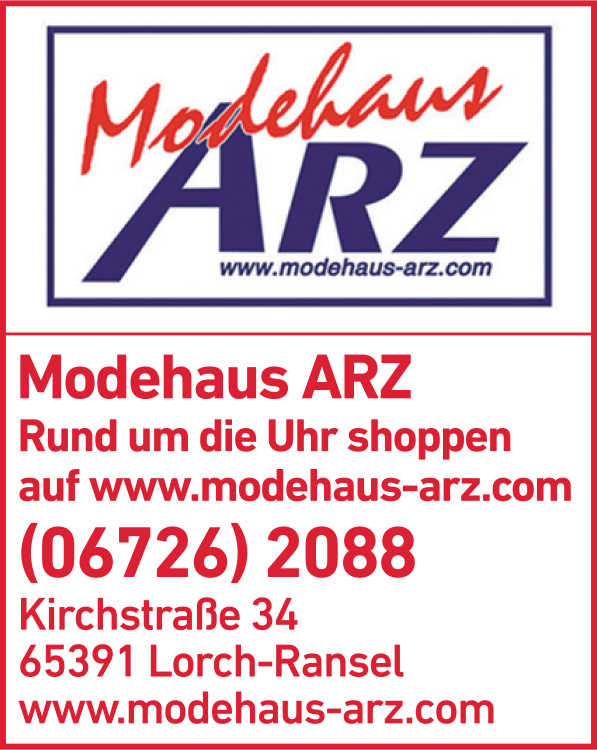 Die Adresse von Modehaus Arz GmbH lautet: Kirchstr. 34, 65391 Lorch