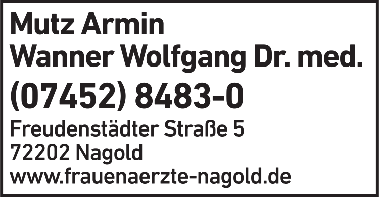 Mutz Armin u. Wanner Wolfgang Dr. med. Frauenärzte 07452 84 83-0 Nagold Freudenstädter Str. 5 72202
