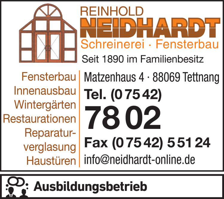 Die Adresse von Neidhardt Reinhold Schreinerei lautet: Matzenhaus 4, 88069 Tettnang