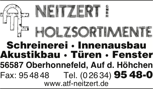 Neitzert GmbH bietet Holzsortimente, Schreinerei, Akustikbau, Fenster, Türen, Dämmstoffarbeiten, Renovierung, Bauen, Neitzert und ATF an.