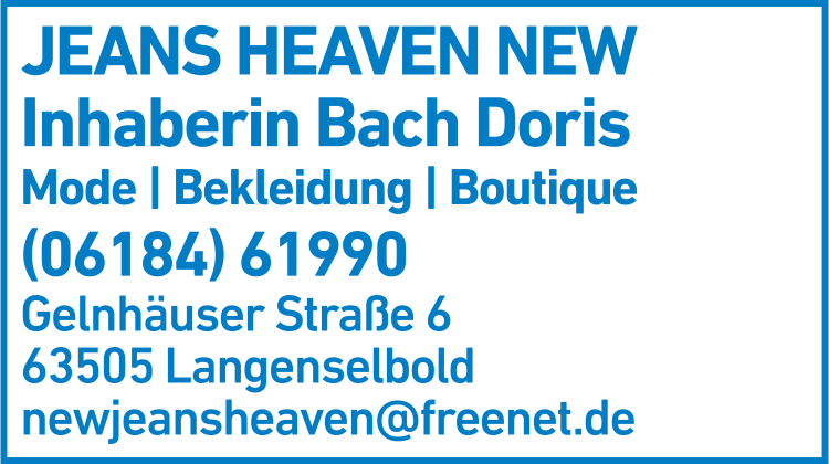 Wie lautet die Adresse von New Jeans Heaven Inh. Doris Bach Jeansgeschäft?