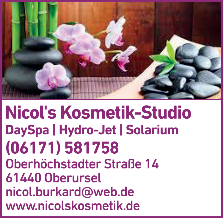 Die Adresse von Nicol's Kosmetik-Studio lautet: Oberhöchstadter Str. 14, 61440 Oberursel