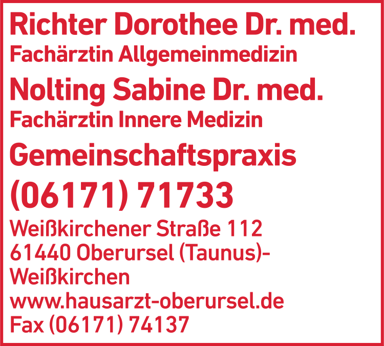 Nolting und Richter Dres. med. Ärzte 06171 7 17 33 Oberursel (Taunus) Weißkirchener Str. 112 61440 Stierstadt