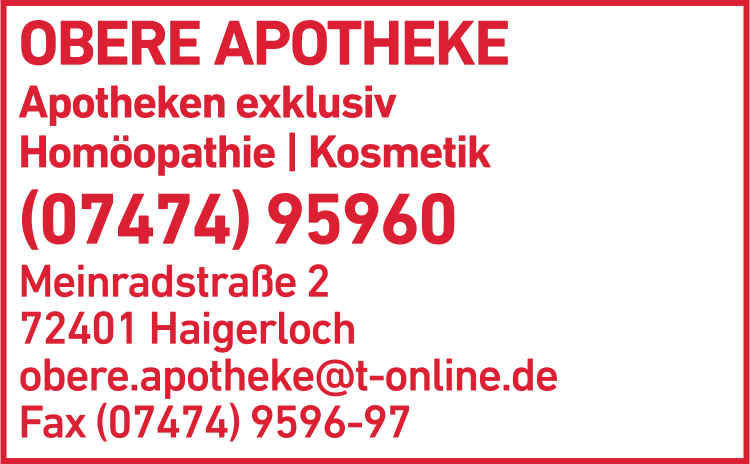 Die Adresse von Obere Apotheke lautet: Meinradstr. 2, 72401 Haigerloch