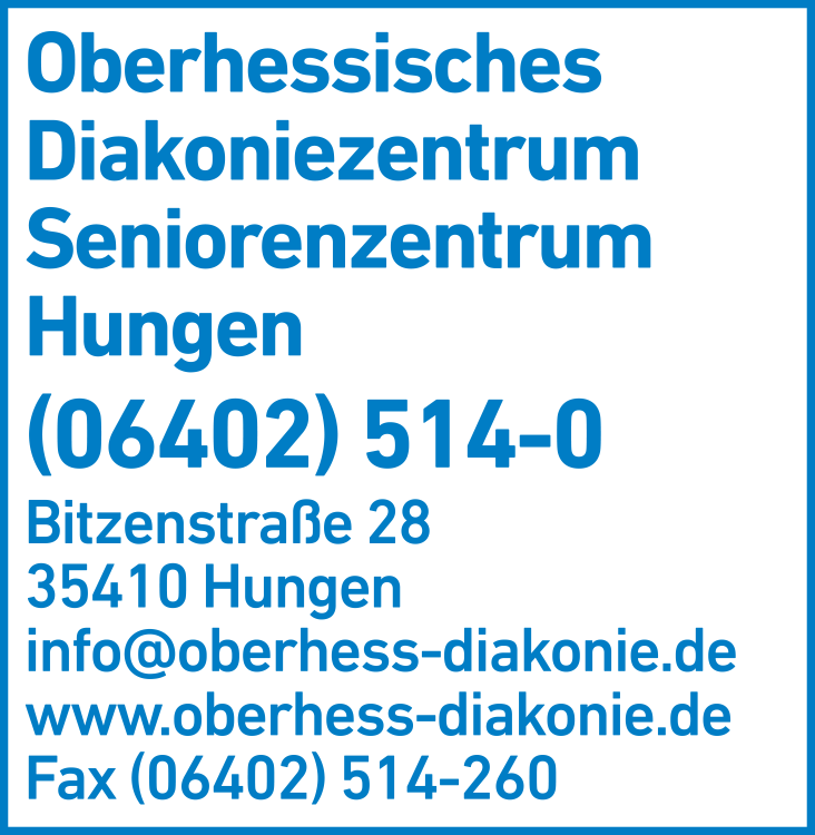 Die Adresse von Oberhessisches Diakoniezentrum Seniorenzentrum lautet: Bitzenstr. 28, 35410 Hungen