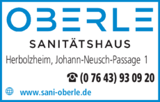 Die Adresse von Oberle Sanitätshaus lautet: Johann-Neusch-Passage 1, 79336 Herbolzheim