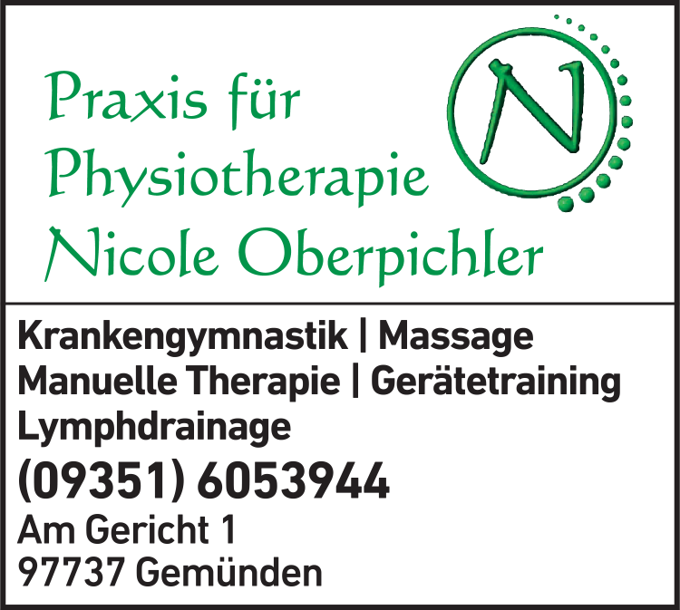 Die Adresse von Oberpichler Nicole Praxis für Physiotherapie lautet: Am Gericht 1, 97737 Gemünden