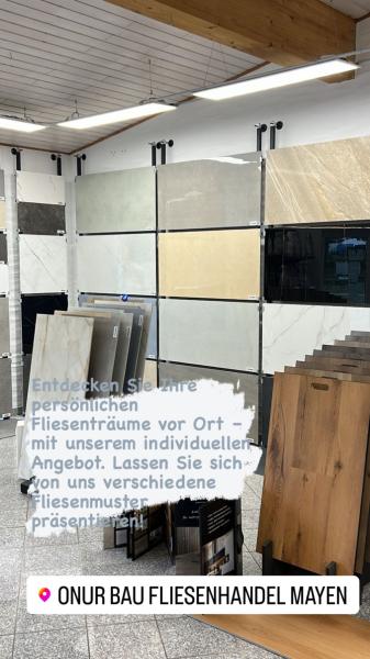 | Onur Bau Fliesenhandel in Mayen bietet hochwertige Fliesen, Vinyl-, Parkett- und Baumaterialien sowie ein Portfolio von erfahrenen Handwerkern. Mit kompetenter Beratung und vielfältiger Auswahl stehen wir für Qualität und Zuverlässigkeit. Unser Team unterstützt Sie bei jedem Projekt, von der Auswahl bis zur Umsetzung. Kontaktieren Sie uns für erstklassigen Service und Produkte, die höchsten Standards entsprechen. |