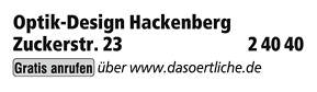 Optik-Design Hackenberg bietet Augenoptik, Sehtest, Optiker, Optik und Optic an.