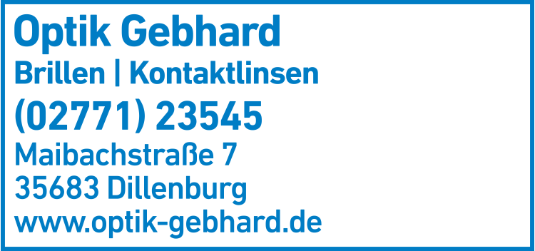 Die Adresse von Optik Gebhard lautet: Maibachstr. 7, 35683 Dillenburg