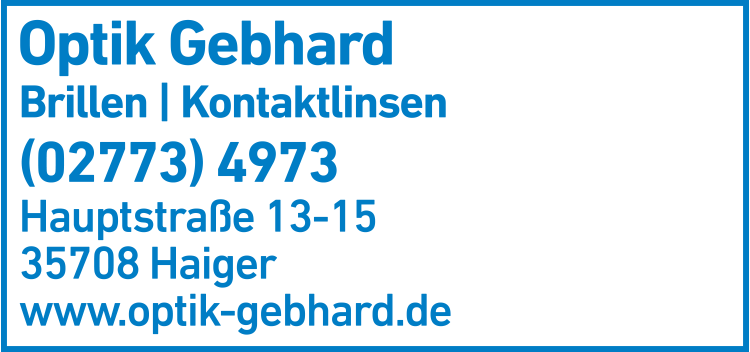 Die Adresse von Optik Gebhard lautet: Hauptstr. 13-15, 35708 Haiger