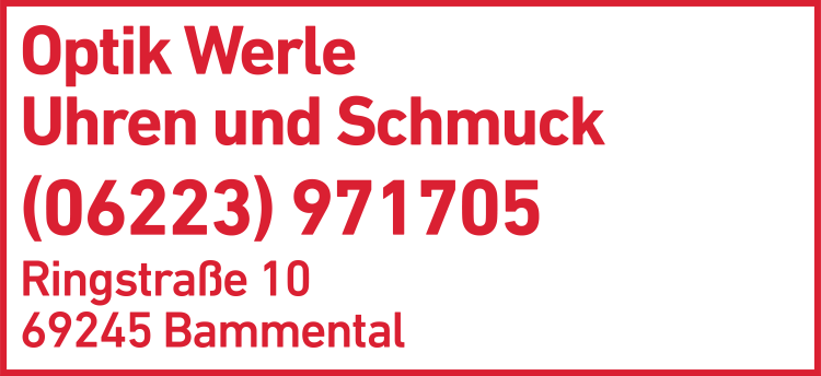 Die Adresse von Optik Werle Uhren und Schmuck lautet: Ringstr. 10, 69245 Bammental