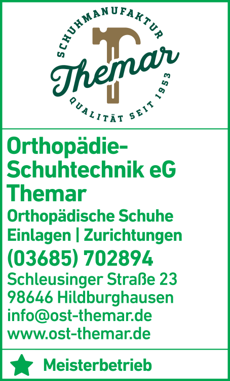 Orthopädie Schuhtechnik eG Themar 03685 70 28 94 Hildburghausen Schleusinger Str. 23 98646