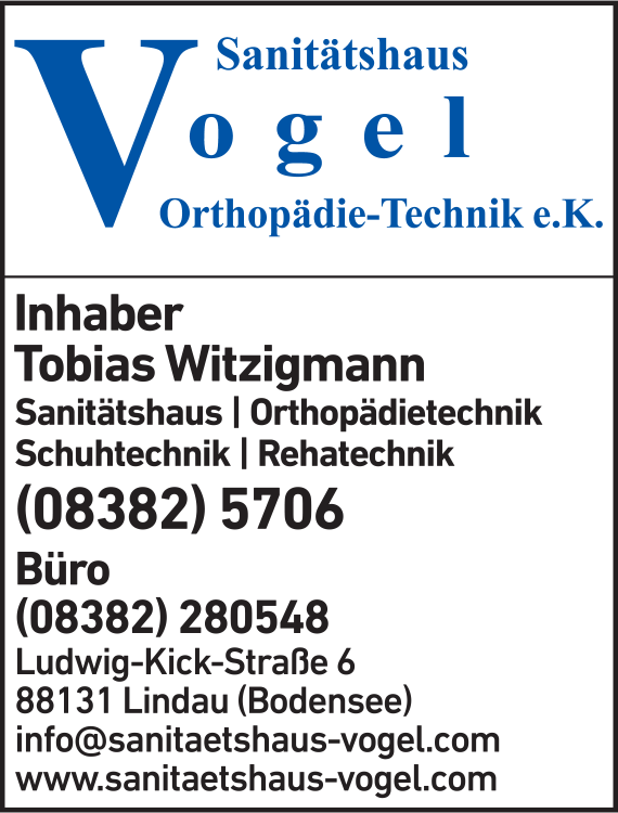 Orthopädie-Technik Vogel e.K. Sanitätshaus 08382 57 06 Lindau Ludwig-Kick-Str. 6 88131 Aeschach de.teleauskunft.oetb.webapp2.detail.Graphic@462dc5aa