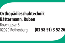 Orthopädieschuhtechnik Bättermann 035891 3 52 26 Rothenburg Rosengasse 6 02929 https://ies.v4all.de/0122/OETB/0229/7/6327/41776327_200x100px.png 5 5 1
