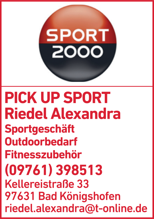 Die Adresse von PICK UP SPORT lautet: Kellereistr. 33, 97631 Bad Königshofen i Grabfeld
