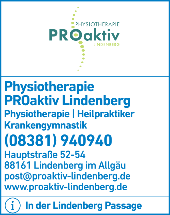 Die Adresse von PROaktiv Lindenberg lautet: Hauptstr. 52-54, 88161 Lindenberg