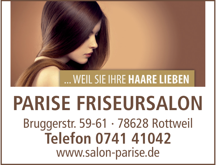 Die Adresse von Parise Friseursalon lautet: Bruggerstr. 59-61, 78628 Rottweil