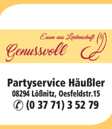 Die Adresse von Partyservice Genussvoll lautet: Oesfeldstr. 15, 08294 Lößnitz