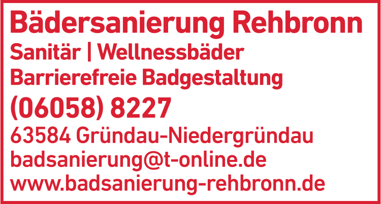 Peter Rehbronn GmbH Bädersanierung 06058 82 27 Gründau Liebloser Str. 10 63584 Niedergründau