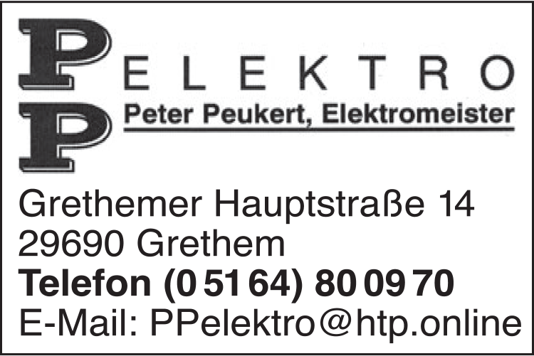 Die Adresse von Peukert Peter Elektro lautet: Grethemer Hauptstr. 14, 29690 Grethem
