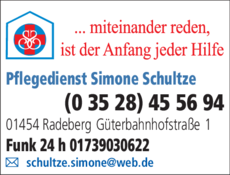 Pflegedienst Simone Schultze 03528 45 56 94 Radeberg Güterbahnhofstr. 1 01454 https://ies.v4all.de/0122/OETB/0229/9/0469/44030469_200x100px.png