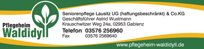 Die Adresse von Pflegeheim Waldidyll lautet: Krauschwitzer Weg 24 a, 02953 Gablenz