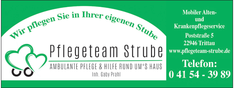 Die Adresse von Pflegeteam Strube lautet: Poststr. 5, 22946 Trittau