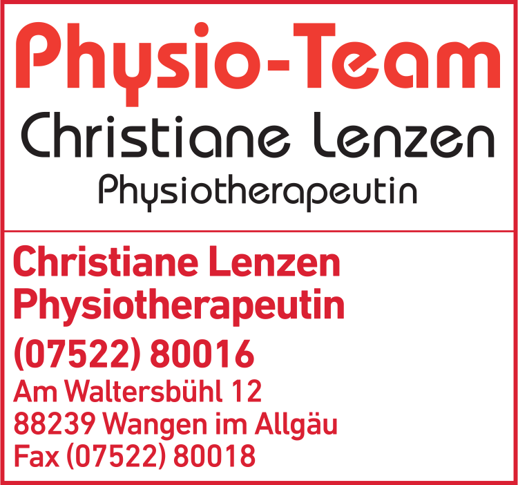 Die Adresse von Physio-Team Christiane Lenzen lautet: Am Waltersbühl 12, 88239 Wangen