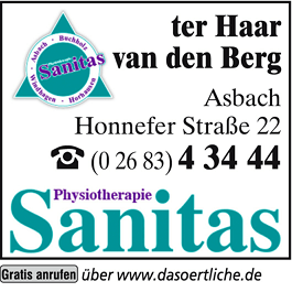 Die Adresse von Physiotherapie Sanitas lautet: Honnefer Str. 22, 53567 Asbach
