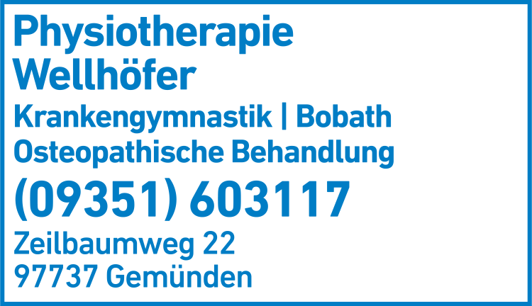 Physiotherapie Wellhöfer 09351 60 31 17 Gemünden Zeilbaumweg 22 97737