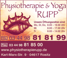 Wie sind die Öffnungszeiten von Physiotherapie & Yoga RUPP?