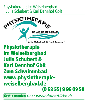 Die Adresse von Physiotherapie im Weiselbergbad Julia Schubert & Karl Dennhof GbR lautet: Zum Schwimmbad, 66629 Freisen