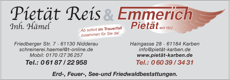 Pietät Reis Reinhard Hämel & Emmerich Pietät