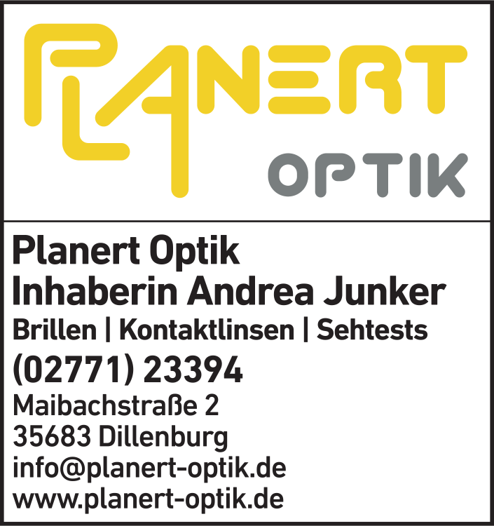 Die Adresse von Planert Optik lautet: Maibachstr. 2, 35683 Dillenburg
